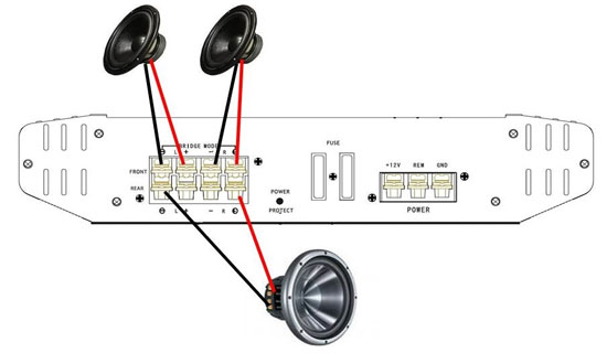 Следующий шаг - это подключение акустических проводов от усилителя к колонкам или сабвуферу. Если даже перепутали полярность, то ничего страшного. После проверки усилителя можно будет прослушать колонки, и если они играют неправильно, то просто поменяйте полярность проводов. Главное надежный контакт, чтобы они не отвалились от вибраций.
